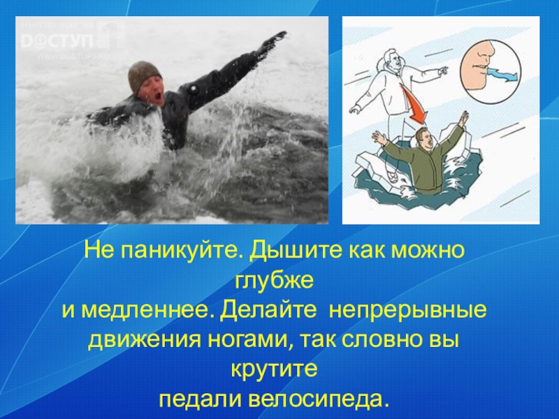Слайд 17Не пытайтесь сразу выбраться на лед. Вокруг
