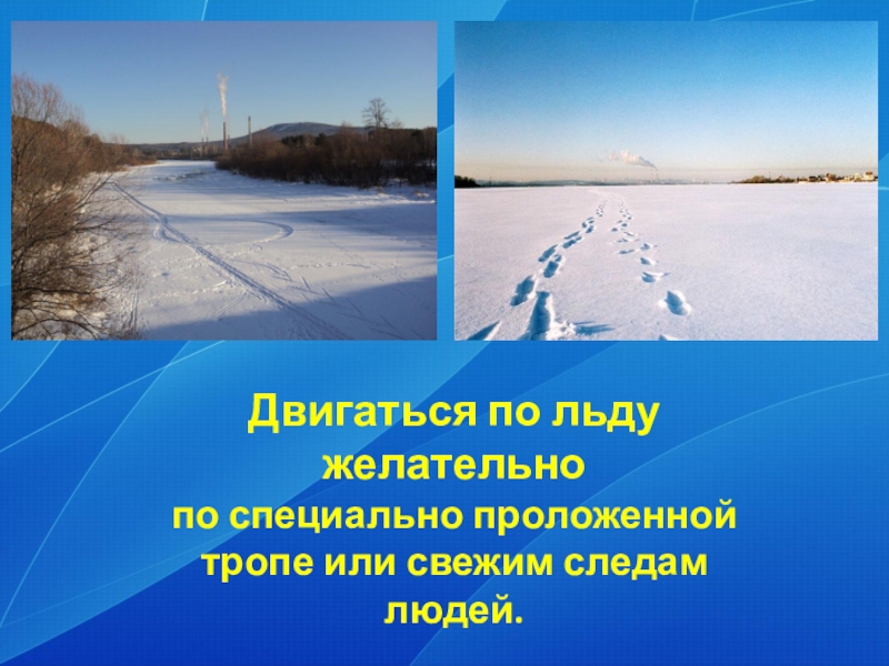 Слайд 9Двигаться по льду желательно