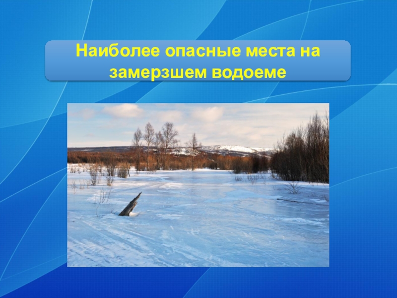 Слайд 2Наиболее опасные места на замерзшем водоеме