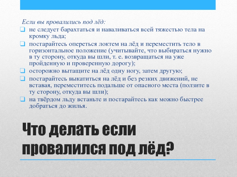 следует барахтаться и наваливаться всей тяжестью тела на кромку льда;
