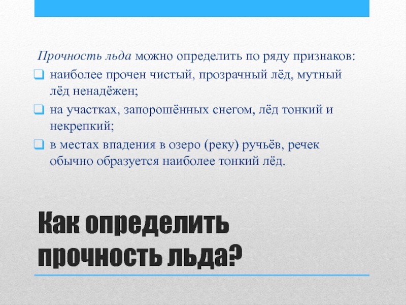 прочен чистый, прозрачный лёд, мутный лёд ненадёжен;