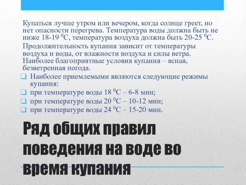 Слайд 5Ряд общих правил поведения на воде во время купания