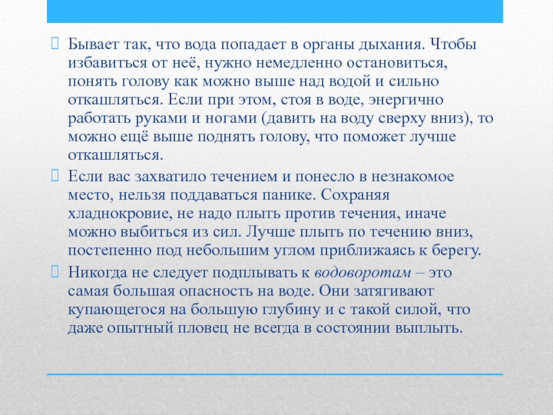Слайд 8Бывает так, что вода попадает в органы дыхания. Чтобы избавиться от