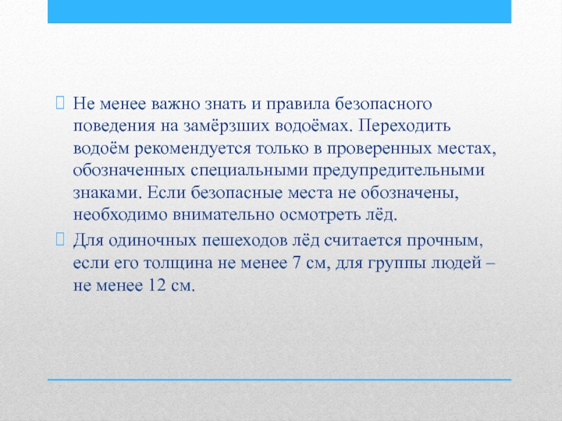 Слайд 15Не менее важно знать и правила безопасного поведения на замёрзших водоёмах.