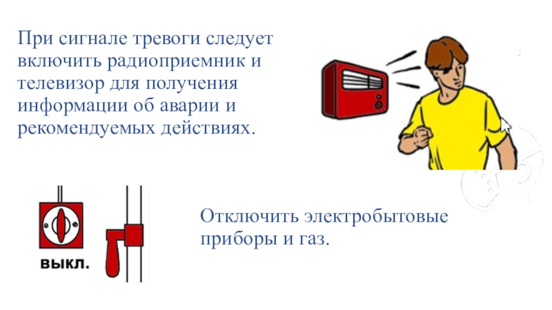 Отключить электробытовые приборы и газ.