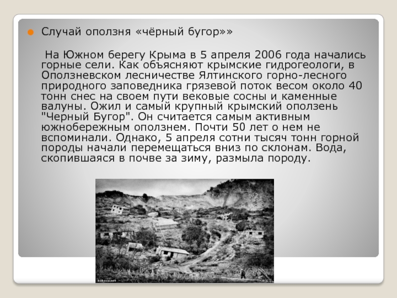 Случай оползня «чёрный бугор»»    На Южном берегу Крыма в 5 апреля 2006 года начались