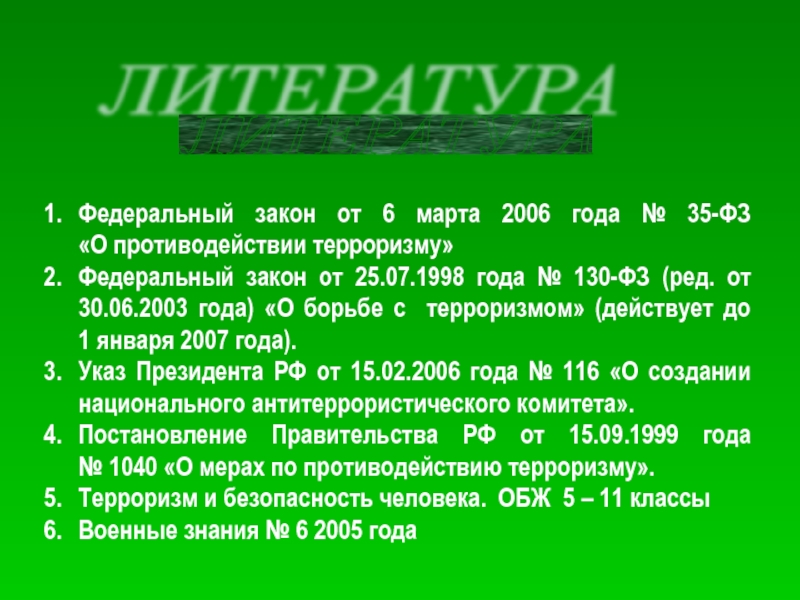 Слайд 3Федеральный закон от 6 марта 2006 года № 35-ФЗ