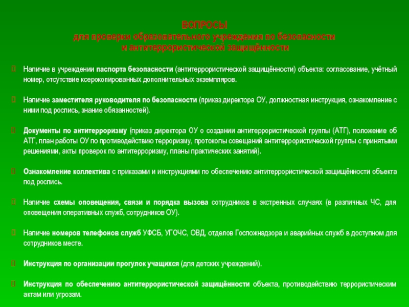 Инструкция по обеспечению антитеррористической защищённости объекта, противодействию террористическим актам или угрозам.