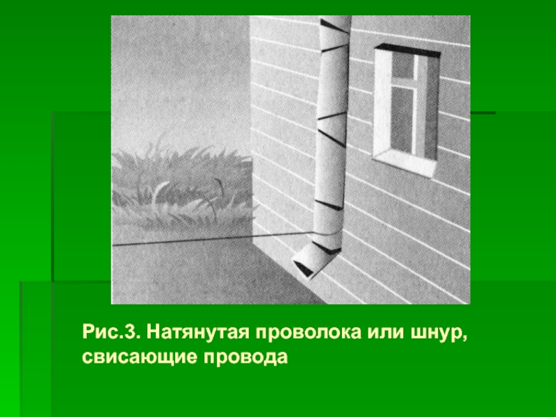 Слайд 14Рис.3. Натянутая проволока или шнур, свисающие провода