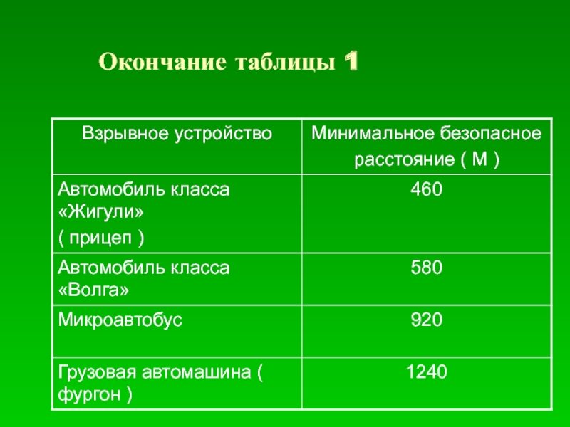 Предупредите людей, чтобы они отошли как можно дальше от опасной находки ( таблица 1 )