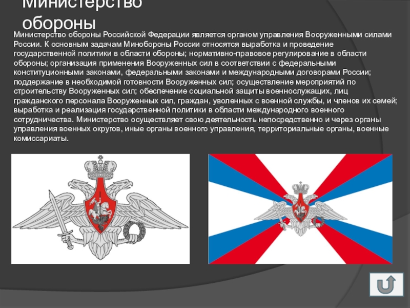 Министерство обороны Российской Федерации является органом управления Вооруженными силами России.