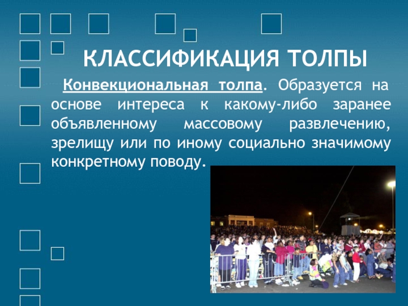 Слайд 7КЛАССИФИКАЦИЯ ТОЛПЫ