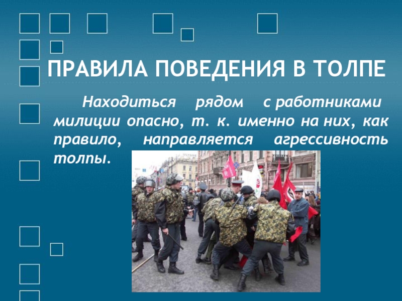Слайд 17ПРАВИЛА ПОВЕДЕНИЯ В ТОЛПЕ