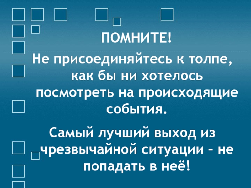 Слайд 15ПРАВИЛА ПОВЕДЕНИЯ В ТОЛПЕ