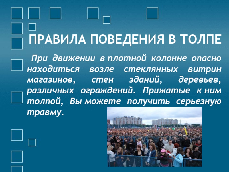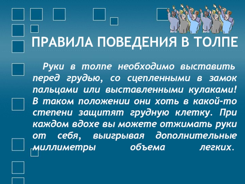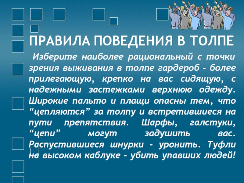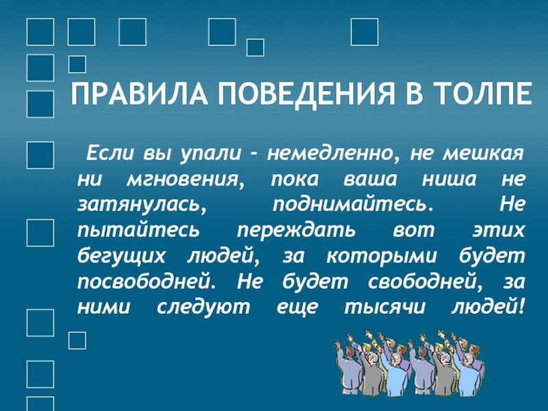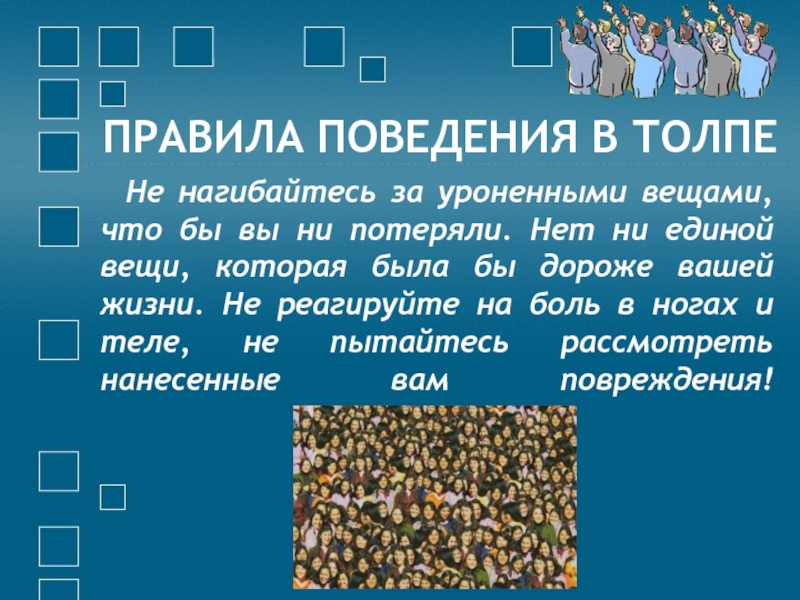 Слайд 20ПРАВИЛА ПОВЕДЕНИЯ В ТОЛПЕ