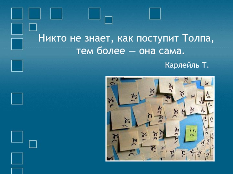 Слайд 24Никто не знает, как поступит Толпа, тем более — она сама.
