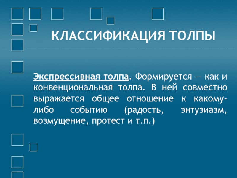 Слайд 8КЛАССИФИКАЦИЯ ТОЛПЫ