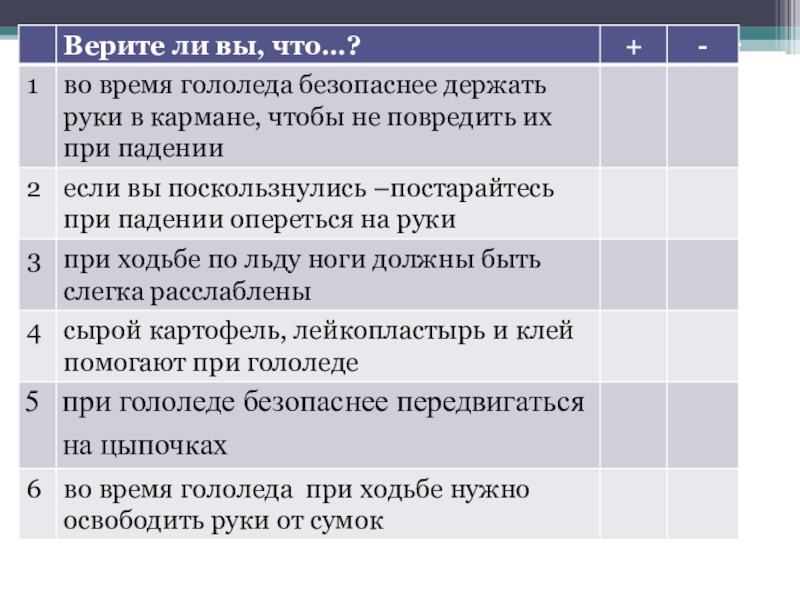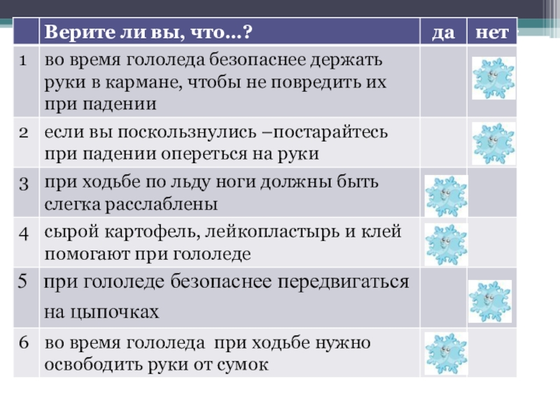 Использованные источники (изображения):Гололед (6слайд) http://www.05.mchs.gov.ru/upload/iblock/7f1/79935f3acb08a6eac549a48b13d90018_xl.jpgДевушка в красной куртке http://hophop.com.ua/images/226_2010101433.jpgМальчик в зимнем комбинезоне http://buyreklama.ru/photos/2711914__________________4cf914515a741.jpgЛедоступы- http://зимоходы.рф/pics/prod/wintertrax_b1.pngСырой картофель http://storage.pressfoto.ru/2010.02/627782272c16397a0bfc46eb078a7e794864b468a_b.jpgПластырь http://www.piseckysvet.cz/images/original/cl_982_478601_1.jpgКлей