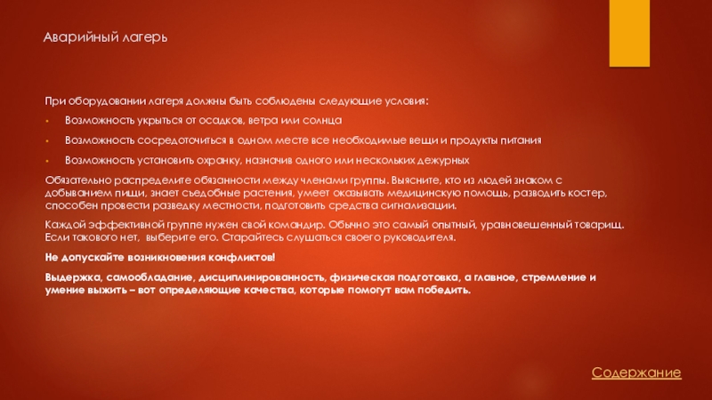 Слайд 6Аварийный лагерь