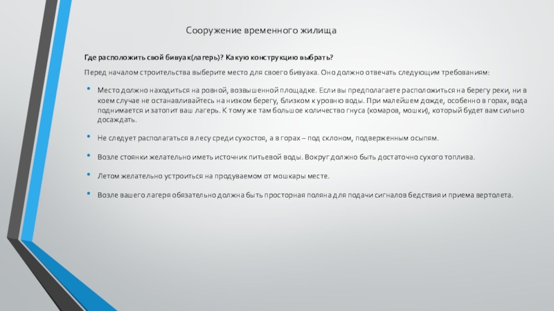 При оборудовании лагеря должны быть соблюдены следующие условия: