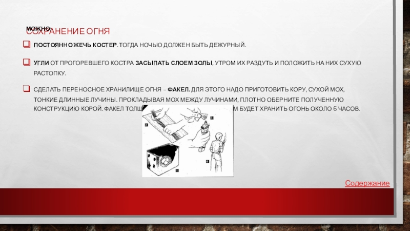 Слайд 24Сохранение огня