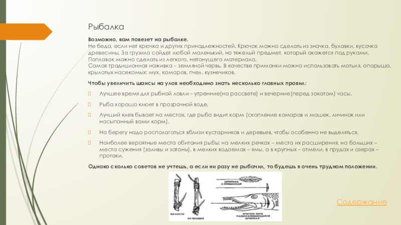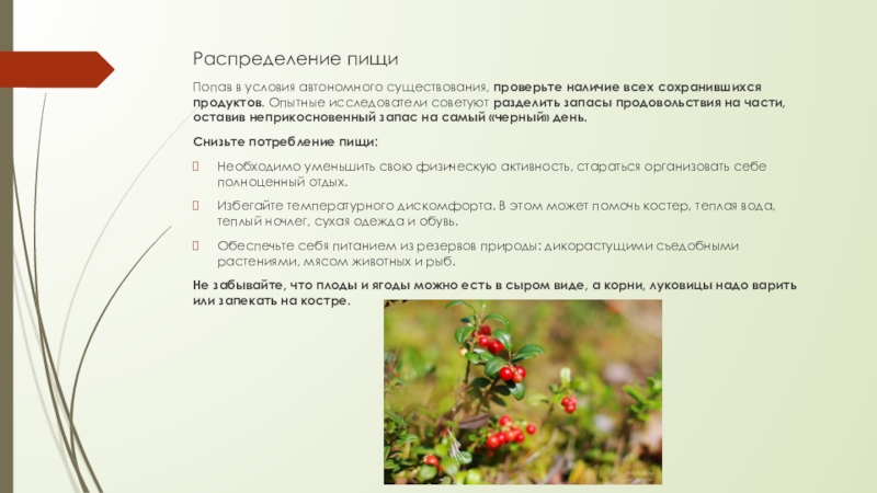 Обеспечьте себя питанием из резервов природы: дикорастущими съедобными растениями, мясом животных и рыб.