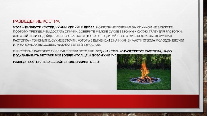 Слайд 21Разведение костра