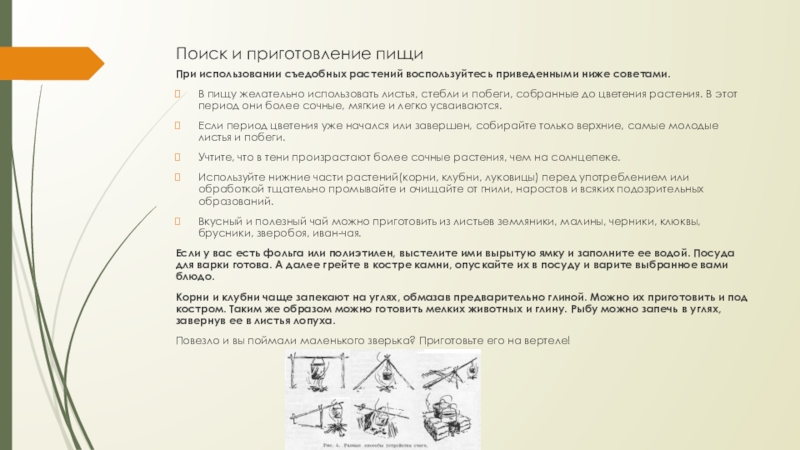 Слайд 28Поиск и приготовление пищи