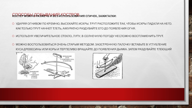 Слайд 23Способы добывания костров