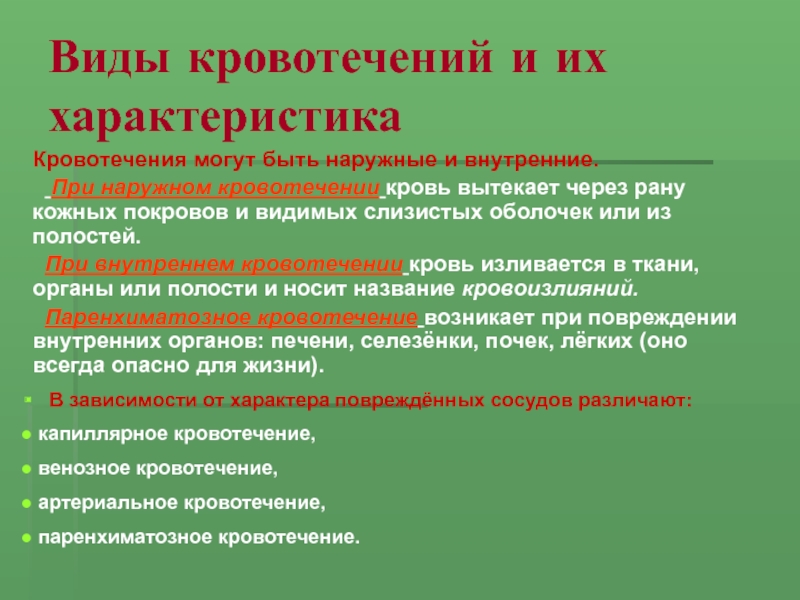 2. Назвать основные виды кровотечений по виду кровеносных сосудов.