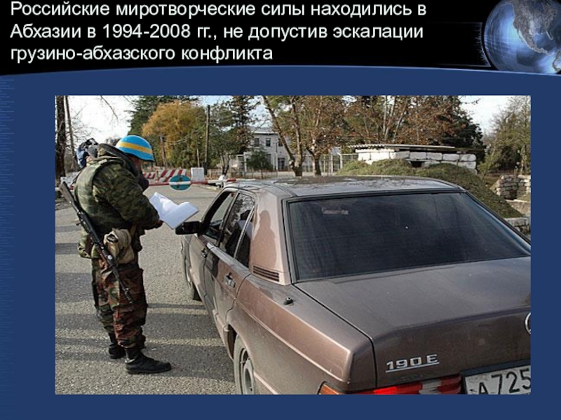 Слайд 19Российские миротворческие силы находились в Абхазии в 1994-2008 гг., не допустив