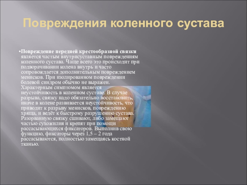 суставе, амплитуда которых превышает границы нормальной. Это может быть, например, при сгибании ноги в коленном суставе с поворотом при фиксированной стопе, резком повороте голени, чрезмерном разгибании и др. наиболее часто такая травма наблюдается в области голеностопного, коленного, локтевого и лучезапястного суставов.