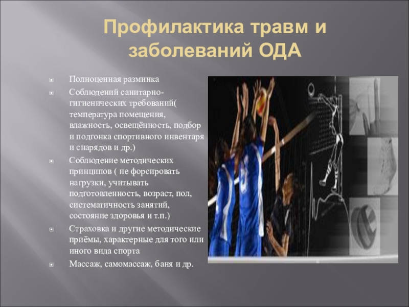 освещённость, подбор и подгонка спортивного инвентаря и снарядов и др.)