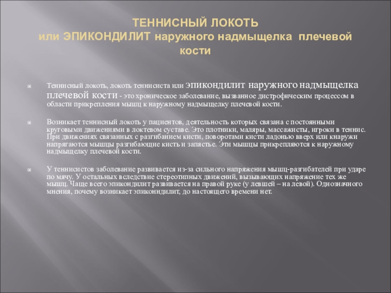 Слайд 38ТЕННИСНЫЙ ЛОКОТЬ
