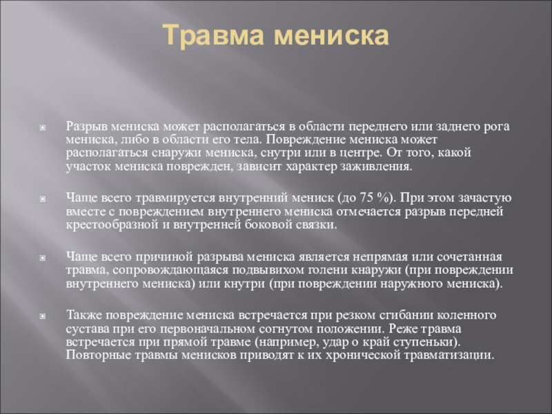 (meniscopathia, анат. meniscus articularis суставной мениск + греч. pathos страдание, болезнь)