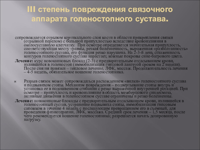 Слайд 25III степень повреждения связочного аппарата голеностопного сустава.