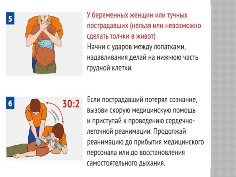 ПРИЗНАКИ (ПРИ НЕПОЛНОЙ ЗАКУПОРКЕ ДЫХАТЕЛЬНЫХ ПУТЕЙ)Приступообразный кашель, шумное дыхание.Охриплость голоса (вплоть до полного исчезновения). Раздувание крыльев носа, посинение кожи и видимых слизистых оболочек. Беспокойное поведение пострадавшего.