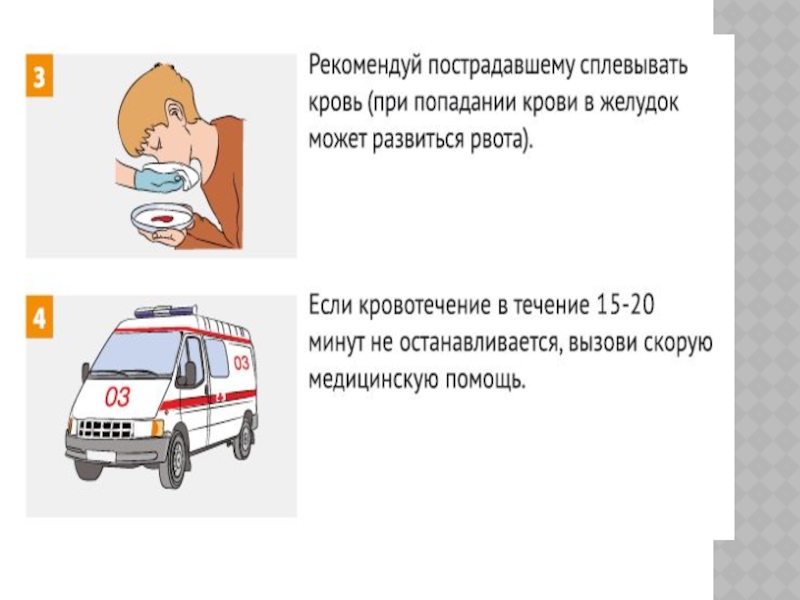 Слайд 9ПЕРВАЯ ПОМОЩЬ ПРИ НОСОВОМ КРОВОТЕЧЕНИИ