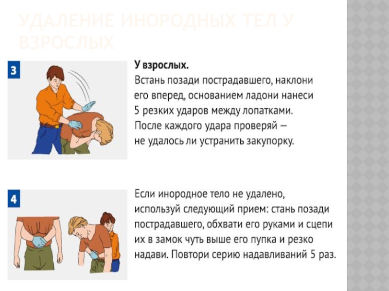 ИЗВЛЕЧЕНИЕ ИНОРОДНОГО ТЕЛА У МЛАДЕНЦАПоложить младенца на своё предплечье, несильно хлопни ладонью между лопатками 5 раз. При