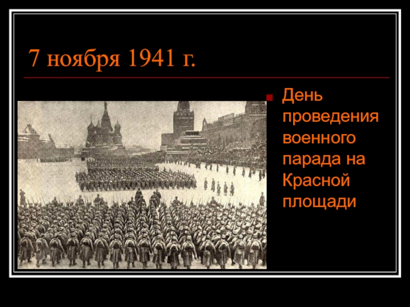 7 ноября 1941 г.День проведения военного парада на Красной площади