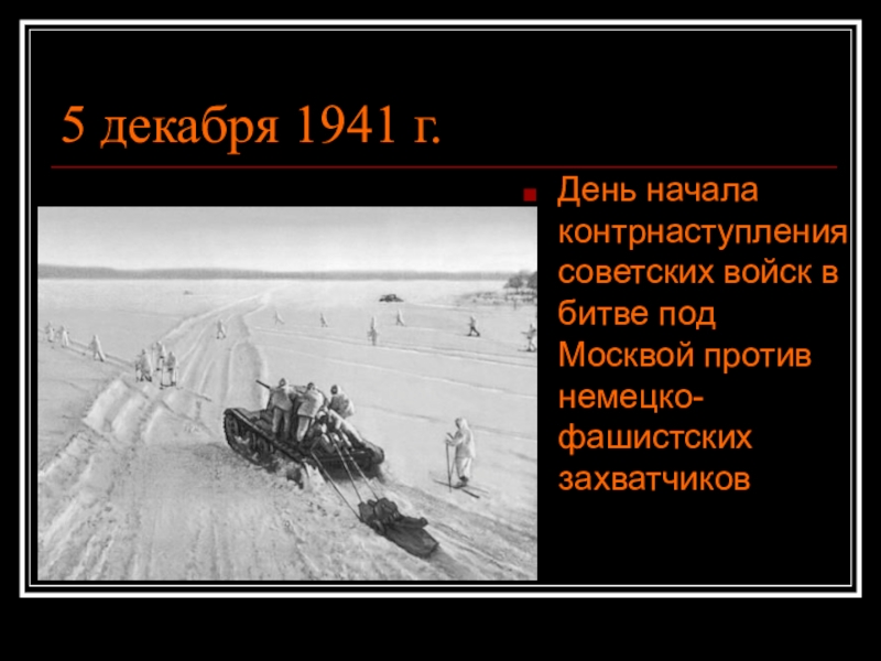 5 декабря 1941 г.День начала контрнаступления советских войск в битве под Москвой против немецко-фашистских захватчиков