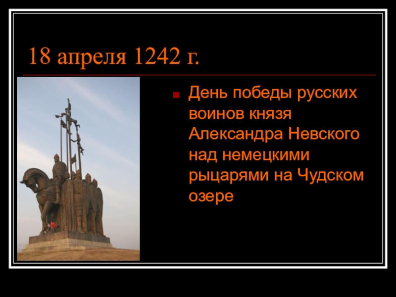 18 апреля 1242 г.День победы русских воинов князя Александра Невского над немецкими рыцарями на Чудском озере