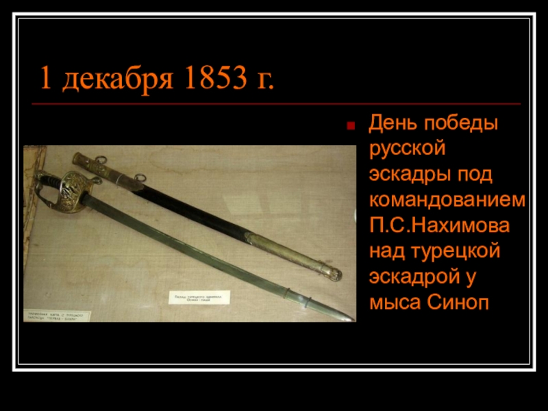 1 декабря 1853 г.День победы русской эскадры под командованием П.С.Нахимова над турецкой эскадрой у мыса Синоп