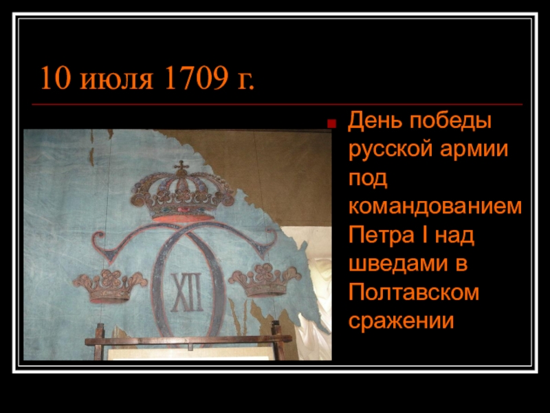 10 июля 1709 г.День победы русской армии под командованием Петра I над шведами в Полтавском сражении