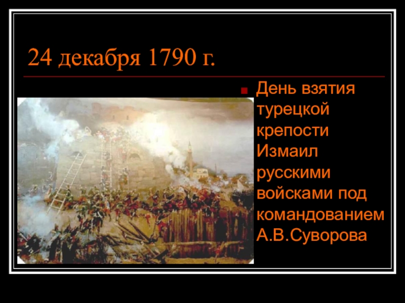 24 декабря 1790 г.День взятия турецкой крепости Измаил русскими войсками под командованием А.В.Суворова
