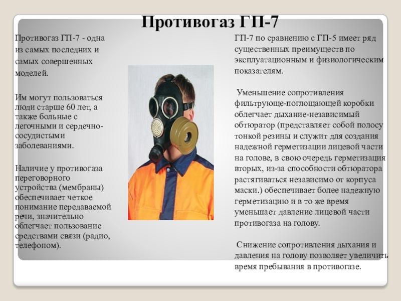 ГП-7 по сравнению с ГП-5 имеет ряд существенных преимуществ по эксплуатационным и физиологическим показателям.