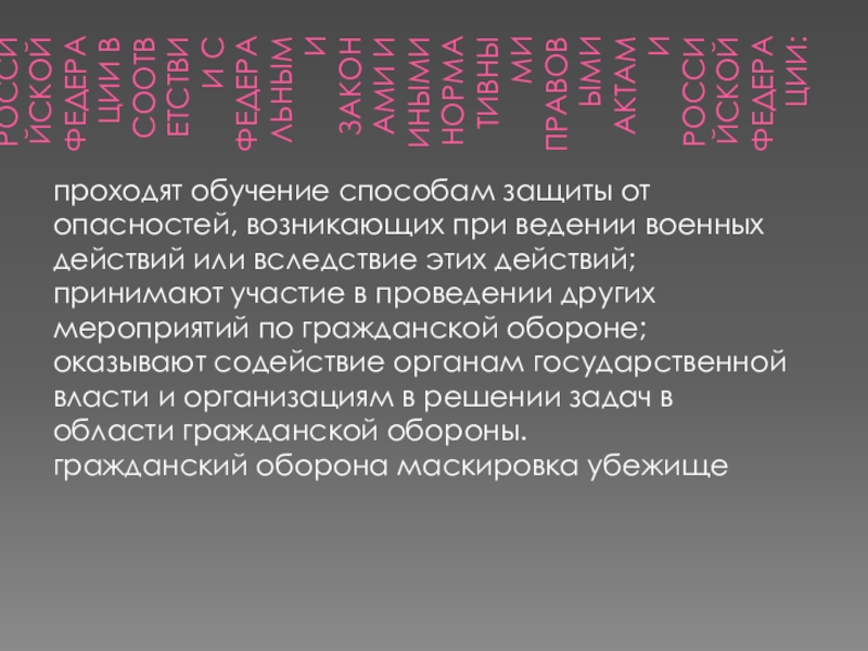 Слайд 2В соответствии с Федеральным законом «О гражданской обороне» гражданская оборона организуется