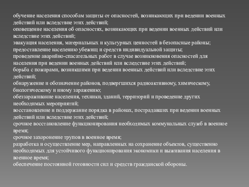 защите населения, материальных и культурных ценностей на территории Российской Федерации от опасностей, возникающих при ведении военных действий или вследствие этих действий.