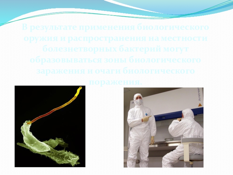 Слайд 17В результате применения биологического оружия и распространения на местности болезнетворных бактерий