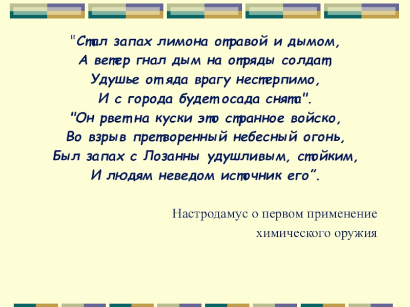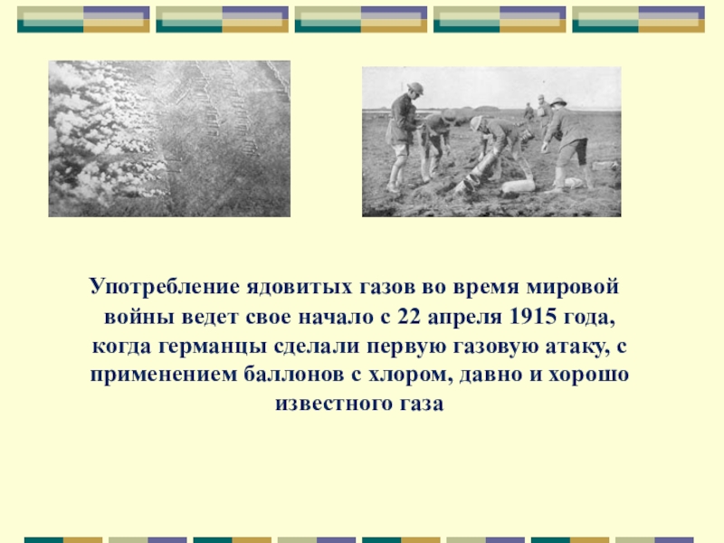 Слайд 4 Употребление ядовитых газов во время мировой войны ведет свое начало